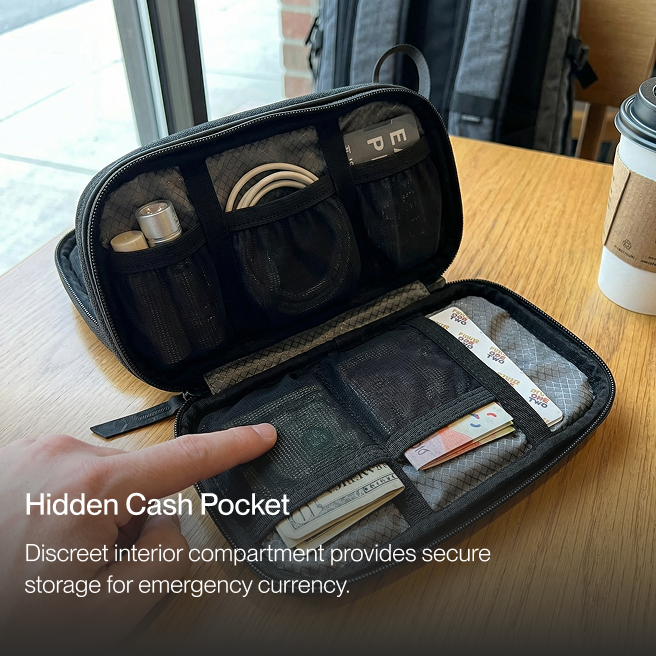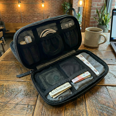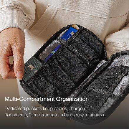 Store your passport, cards, cables, and small essentials in organized compartments.