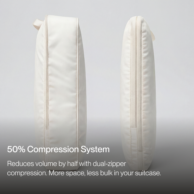 • Instant 50% Compression: Reduce volume by up to 50% to maximize luggage space.