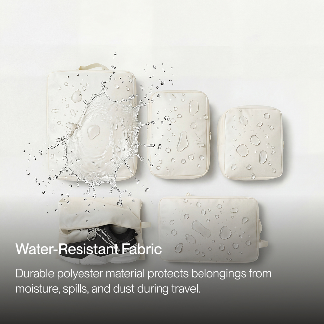 Crafted with quality-first materials, these packing cubes are built for efficiency and everyday durability. The water-resistant and dust-proof fabric protects your belongings from moisture and dirt. The wear-resistant, anti-pilling material ensures your packing cubes look great trip after trip. Pack smarter. Stay organized. Travel better.